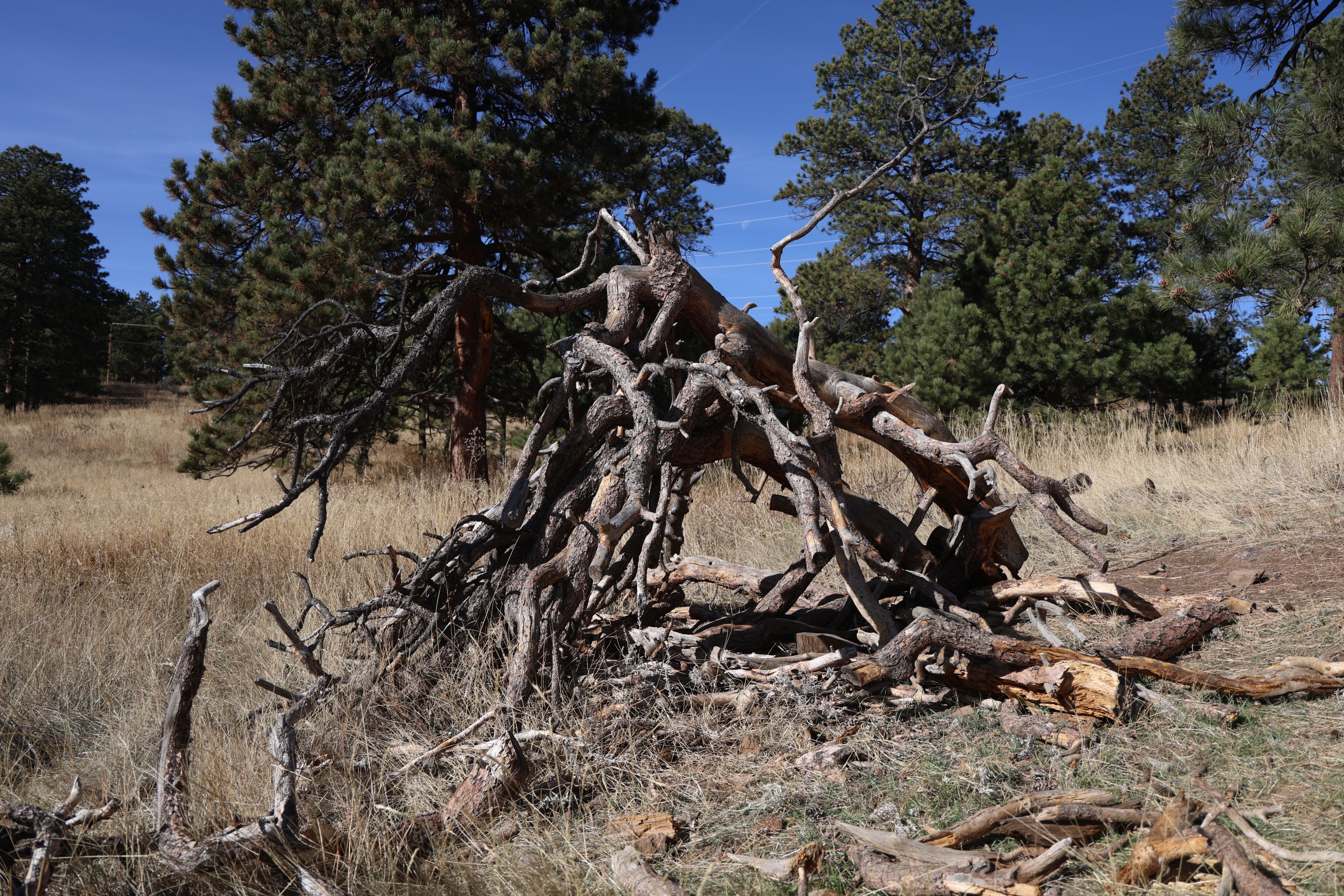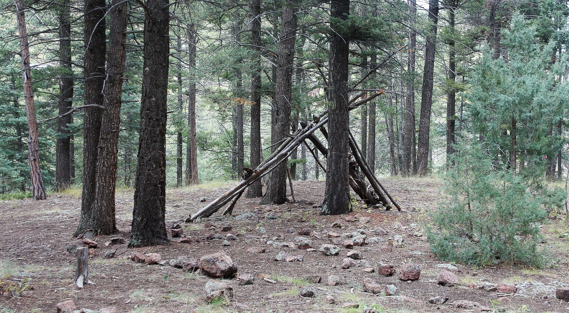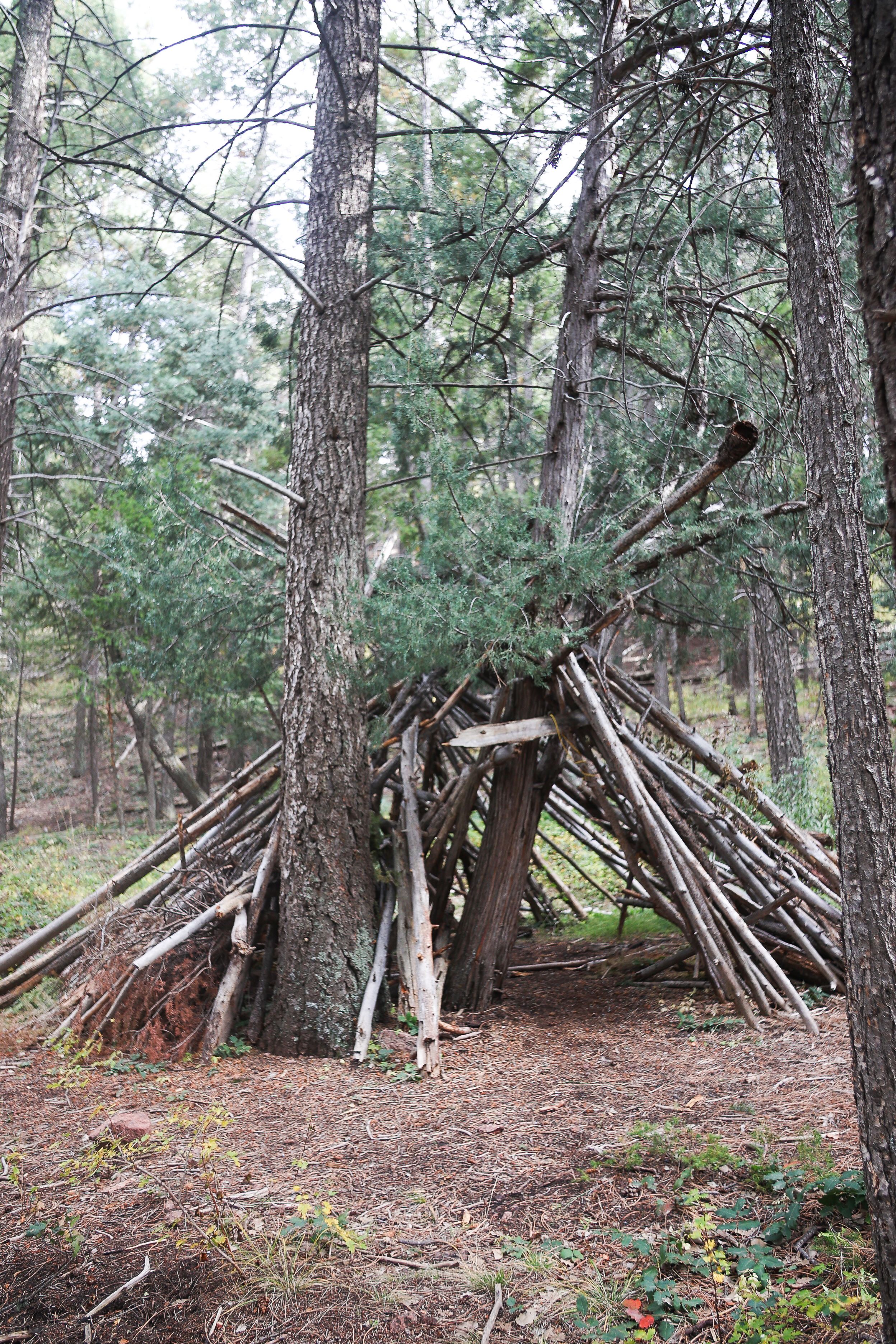 A tree fort built by Wonders of Nature kids in Palmer City, Colorado, September 30, 2025. (Izabelle Stewart-Adams, CU News Corps).