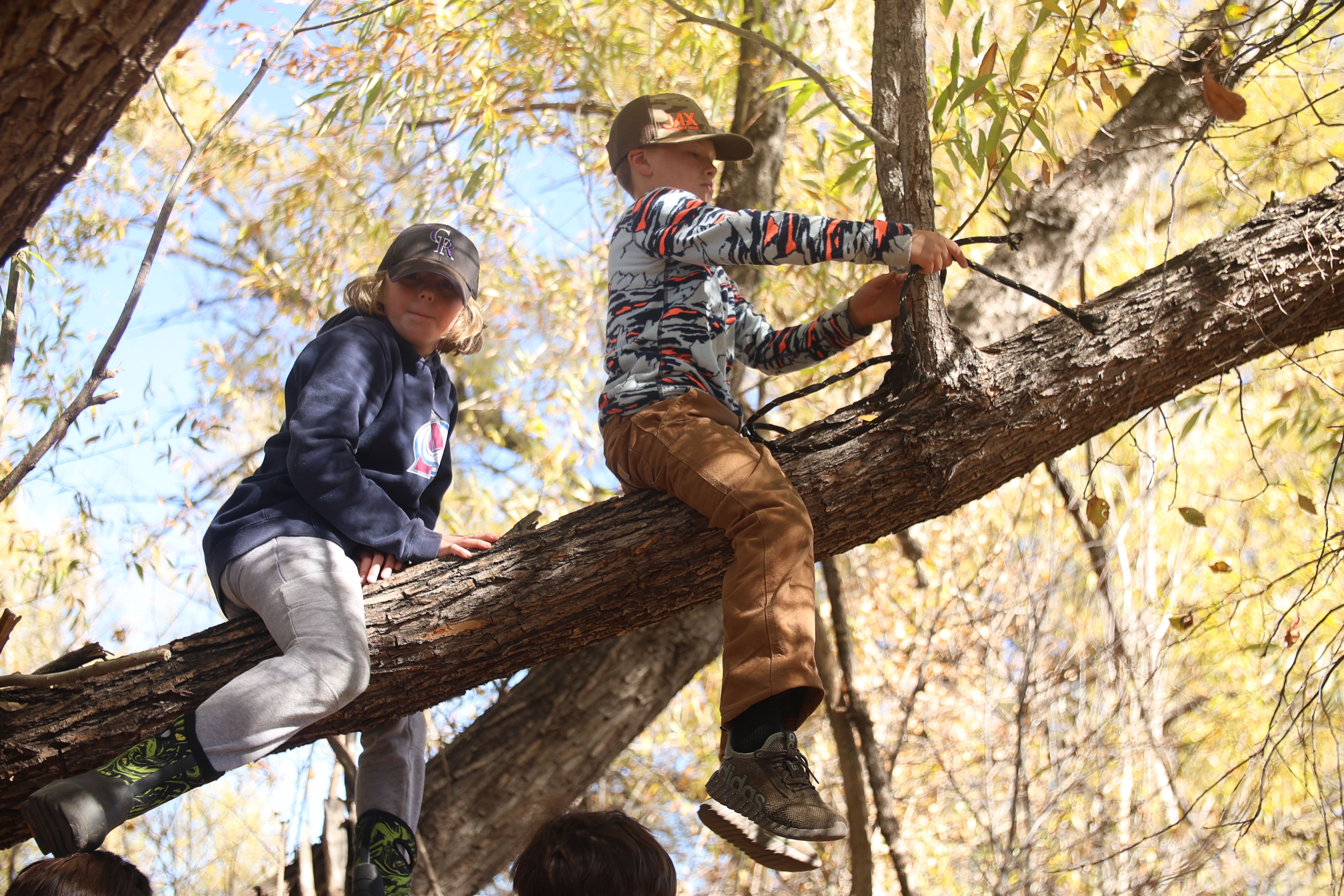During free play, kids climb trees based on their capability in Louisville, Colorado, October 29, 2025. (Izabelle Stewart-Adams CU NewsCorp).