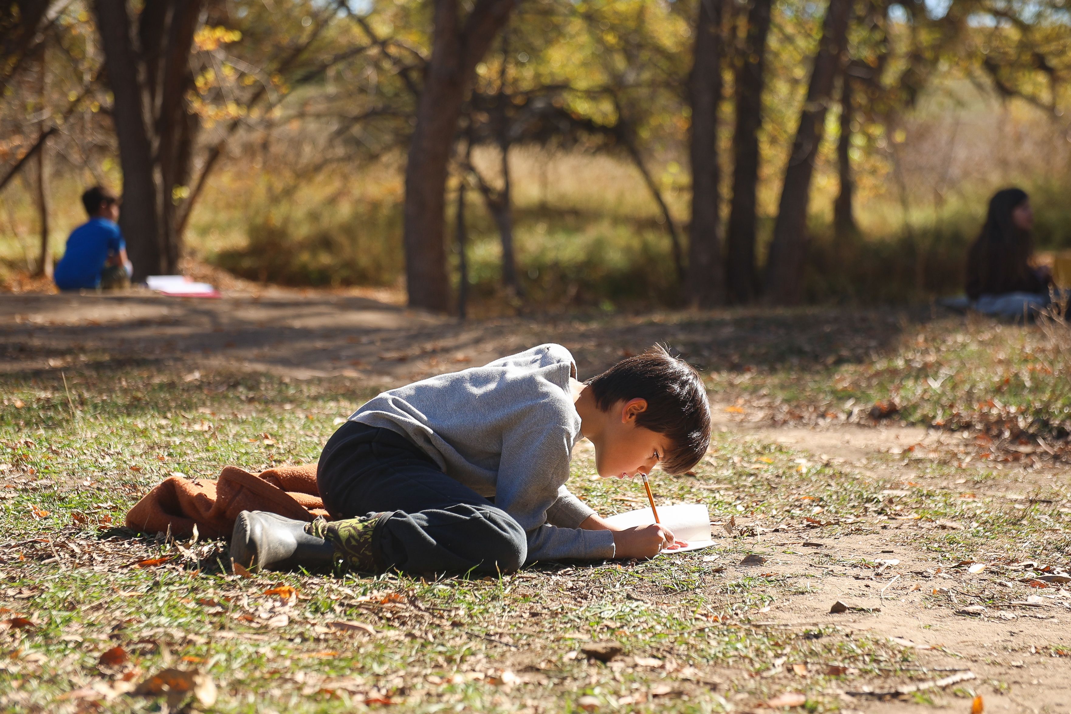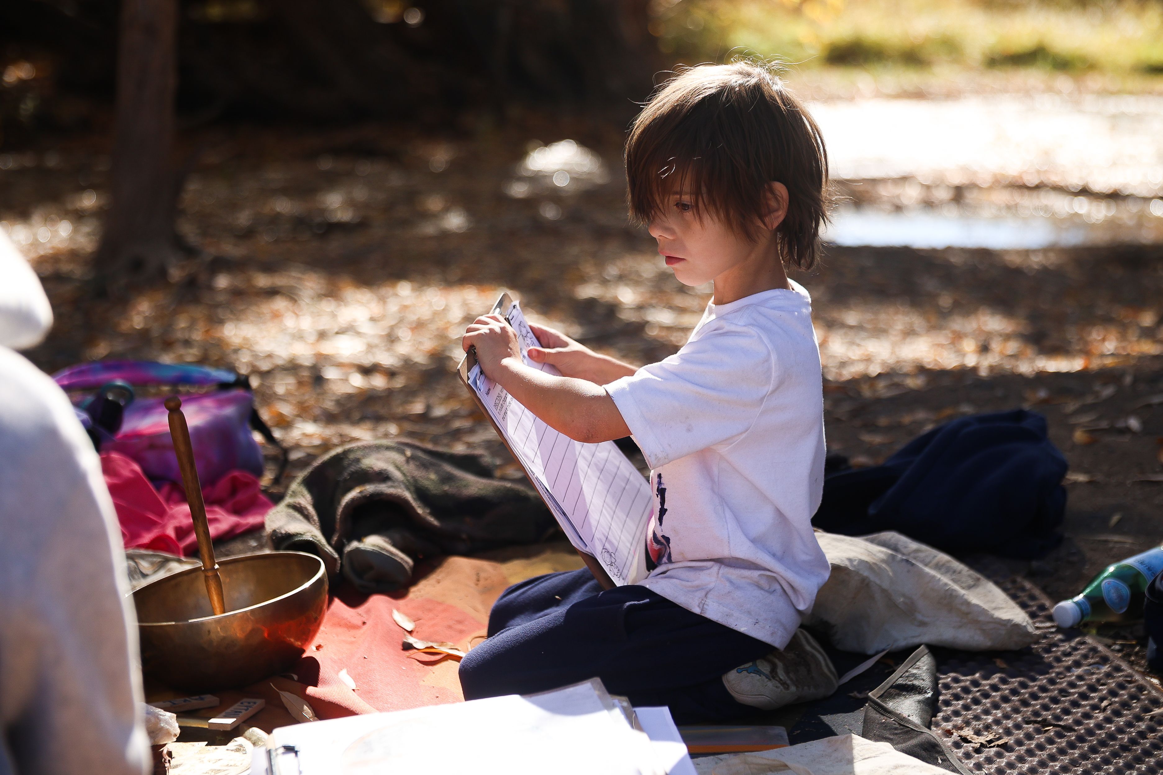 A young boy grabs a clipboard to work on his story in Louisville, Colorado, October 29, 2025. (Izabelle Stewart-Adams CU NewsCorp).