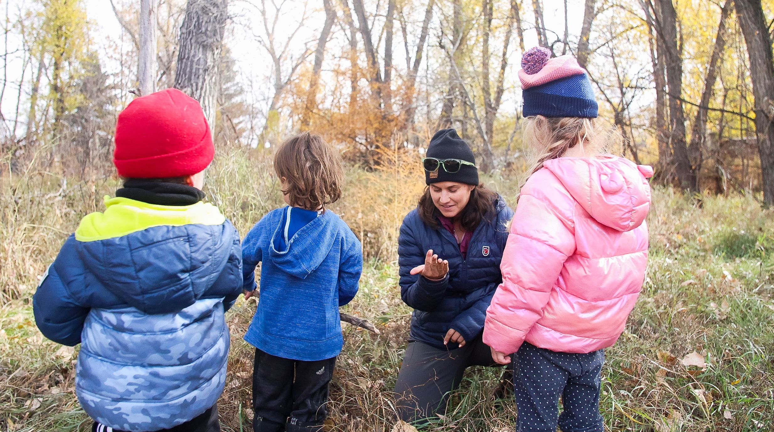 The sounds of chickens clucking and goats bleating greet Schuler as she begins another day of running forest school in Boulder. As she approaches, kids greet her as they run towards the creek and create potions in the mud kitchen. The smell of wood burning in the distance adds a bit of warmth to a crisp autumn morning.