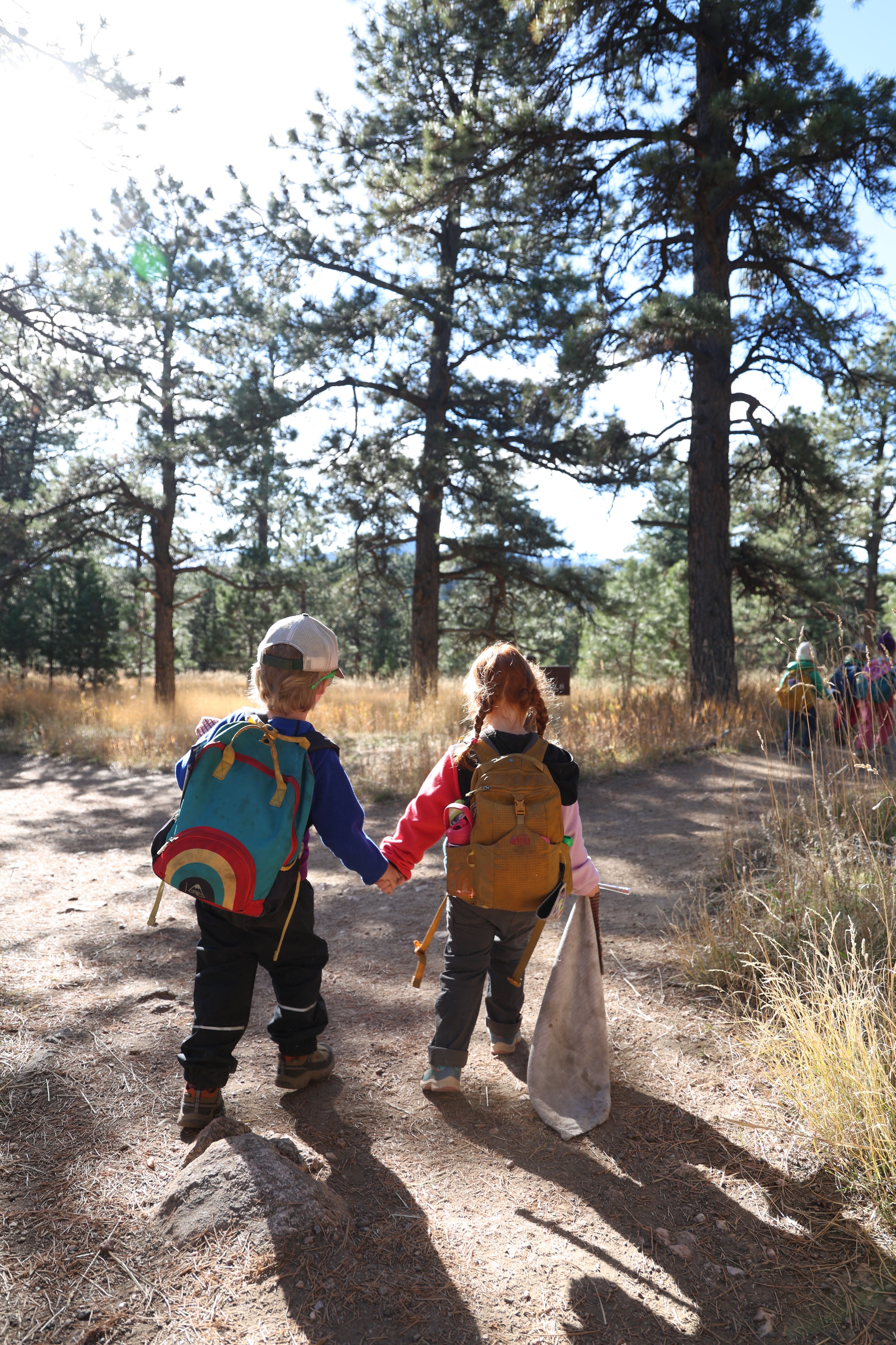 Two students holding hands at Colorado Nature School in Golden, Colorado, November 10, 2025. (Izabelle Stewart-Adams, CU News Corps).